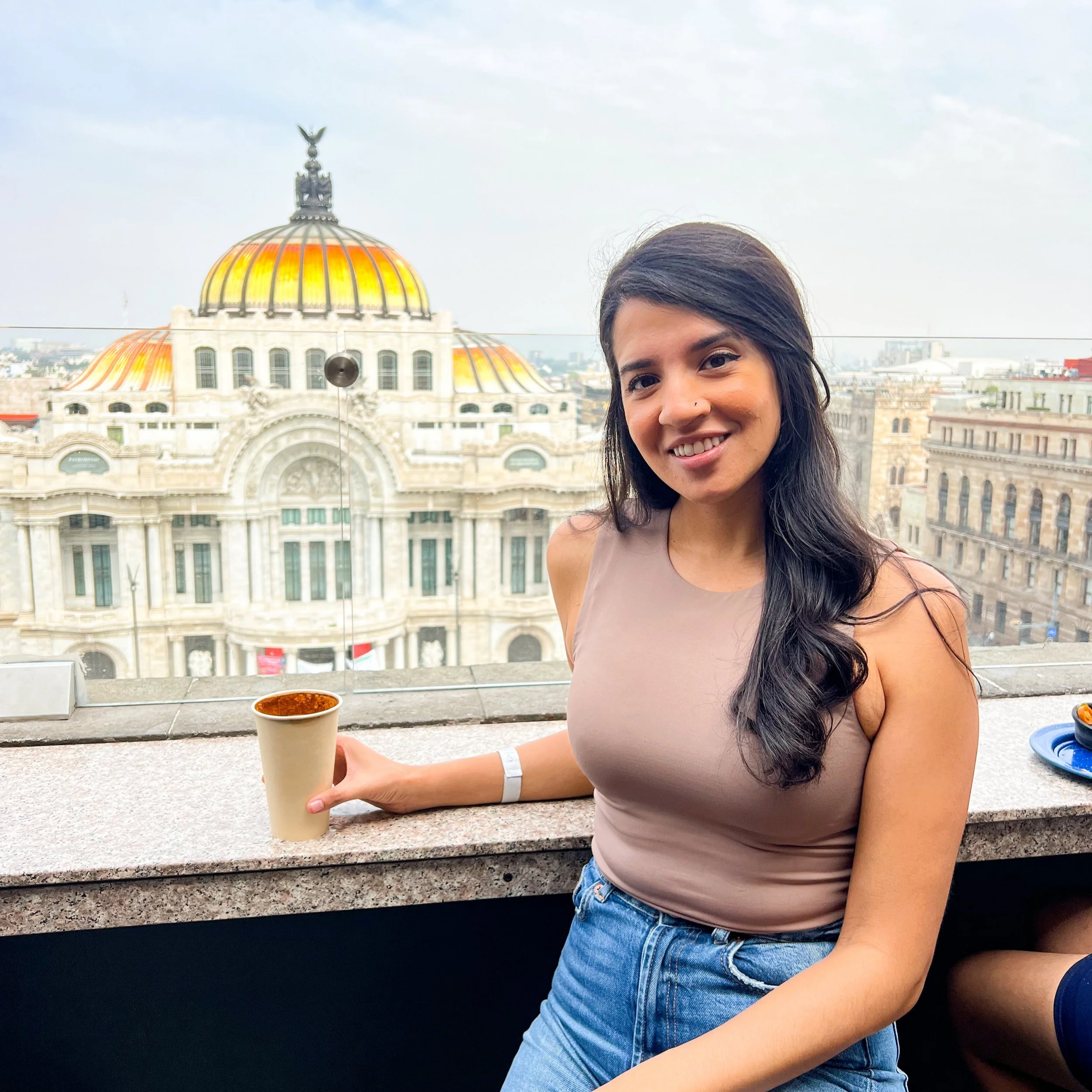 Drinking chocolate at Finca Don Porfirio for views of the Palacio de Bellas Artes : Across the street from the iconic museum, go inside Sears. Then take the elevator up to the 8th floor, and there you’ll find Finca Don Porfirio. A coffee shop with the most incredible view of the Palacio de Bellas Artes.