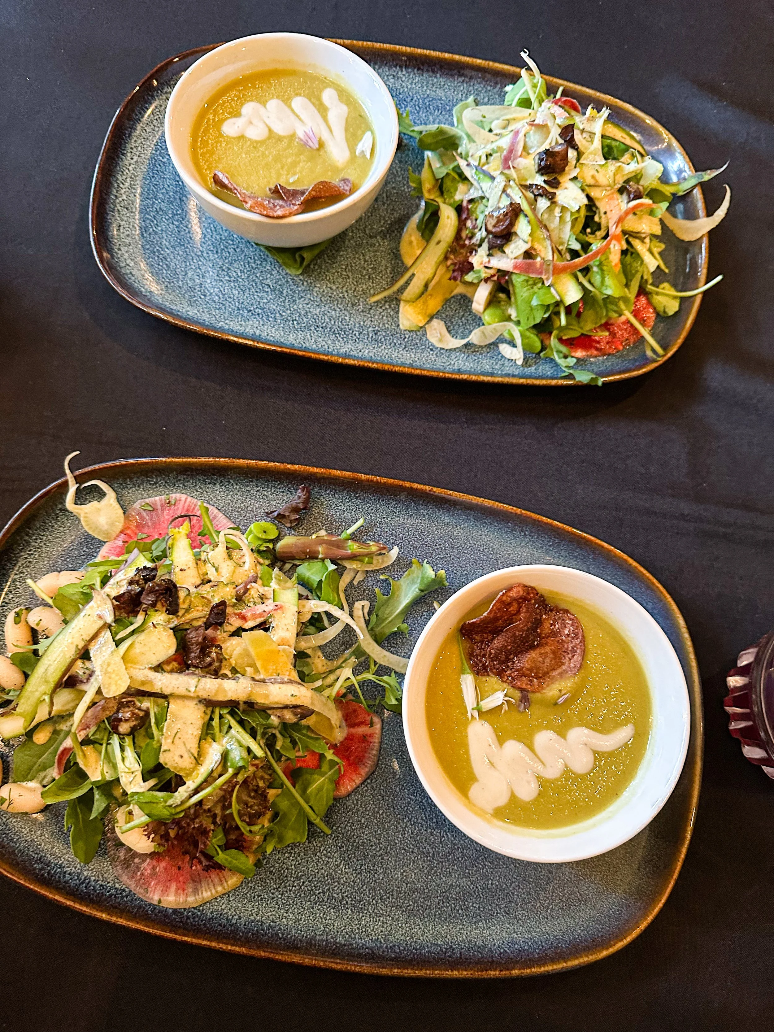 The first and second course came together. The asparagus soup was a standout for me.
